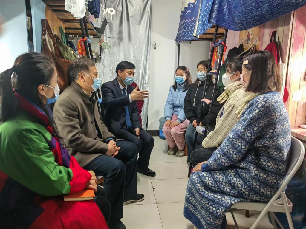 党委委员、副校长晏昱(右2)在宿舍走访音乐舞蹈学院学生