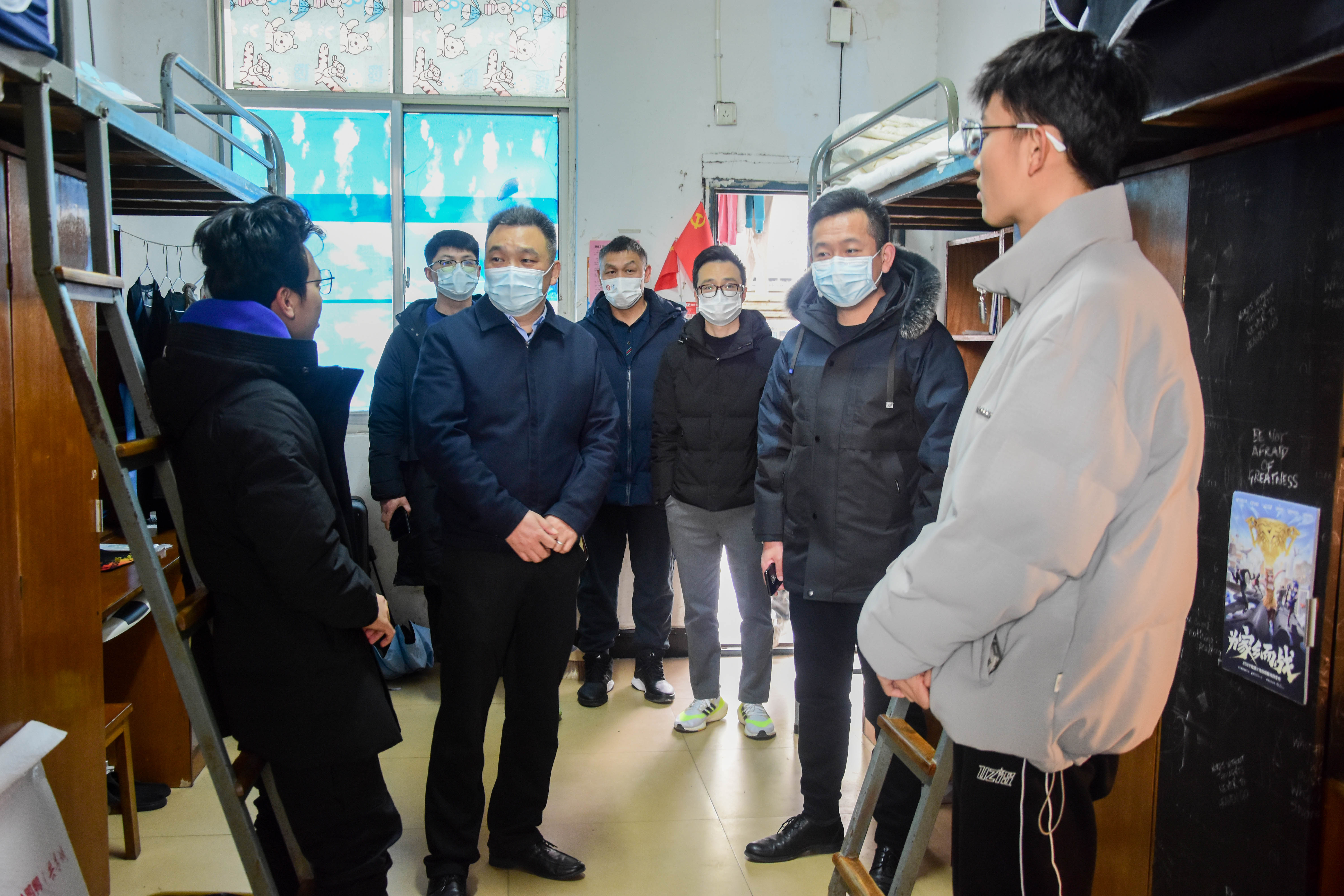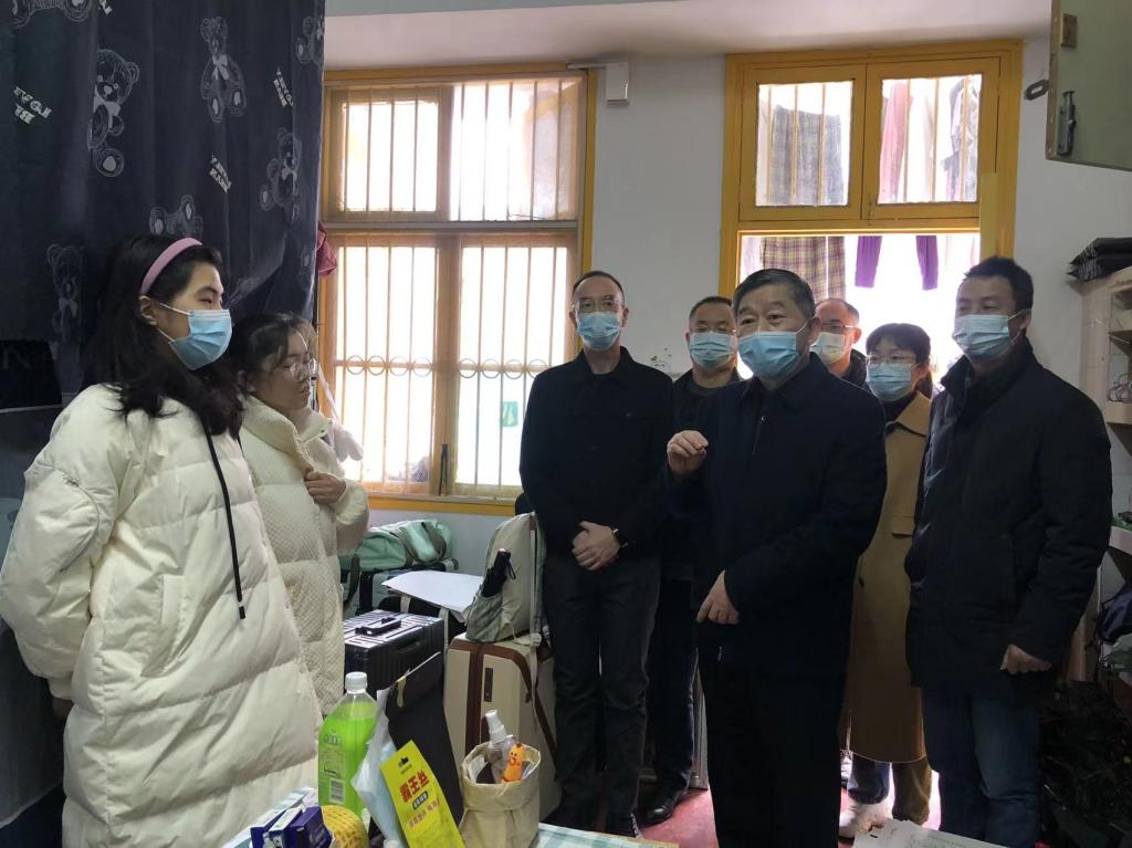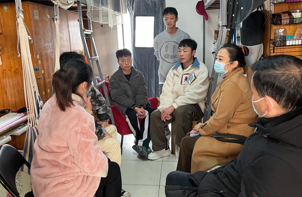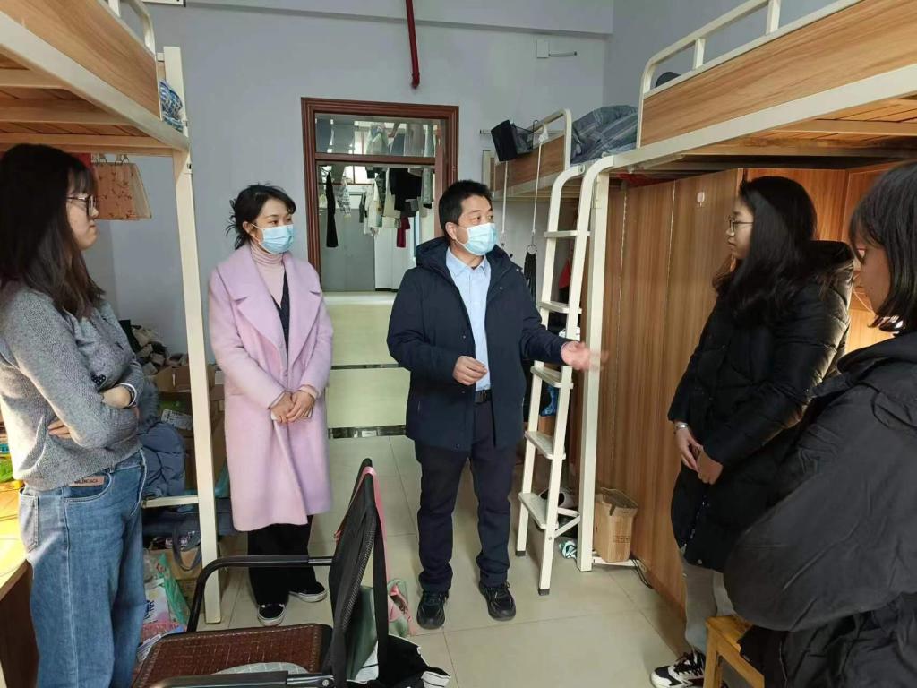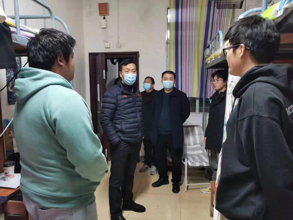 党委委员、纪委书记郭文超(右3)在宿舍走访地旅学院学生