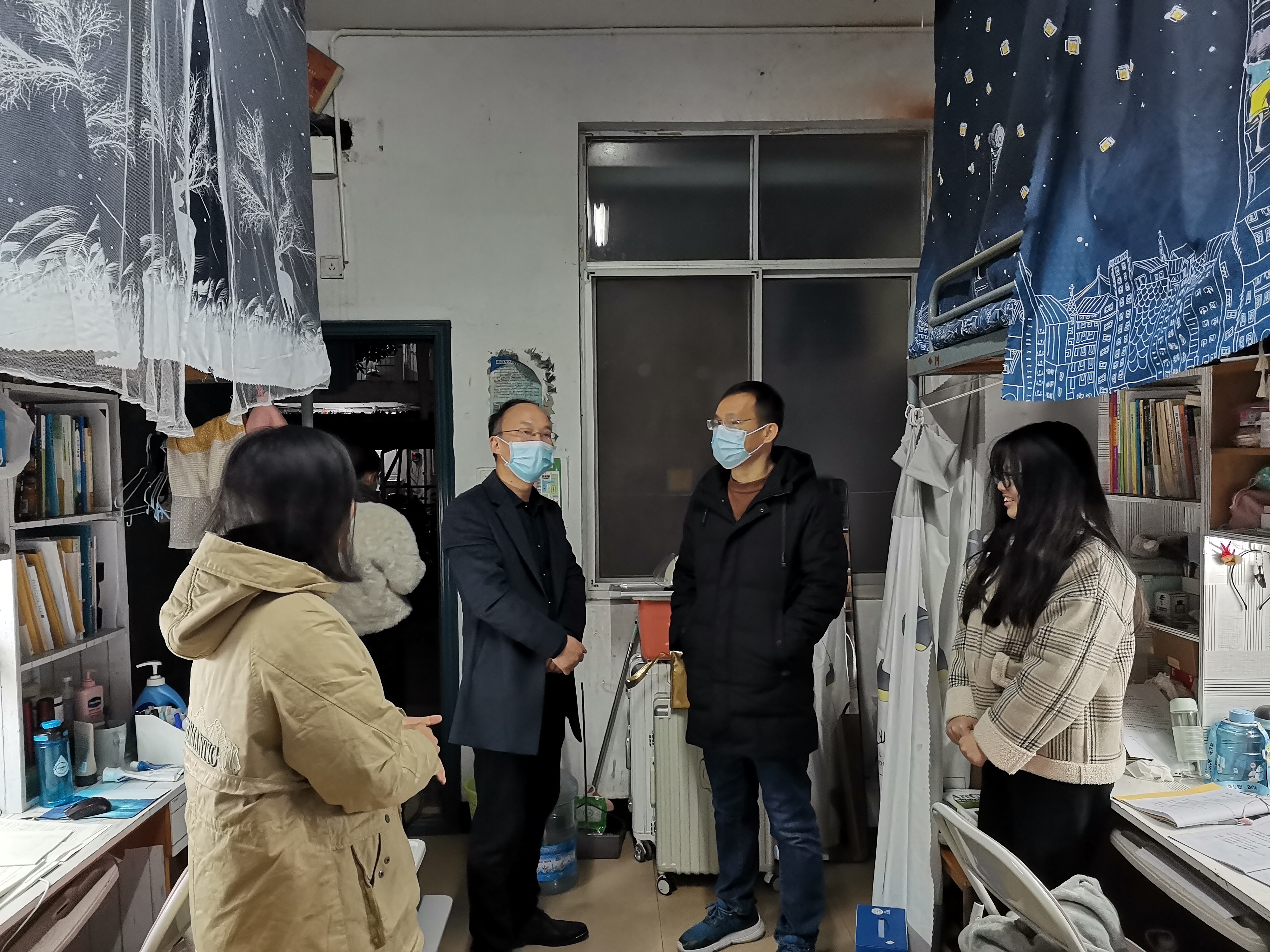 党委副书记龚卫明(右2)在宿舍走访土建学院学生